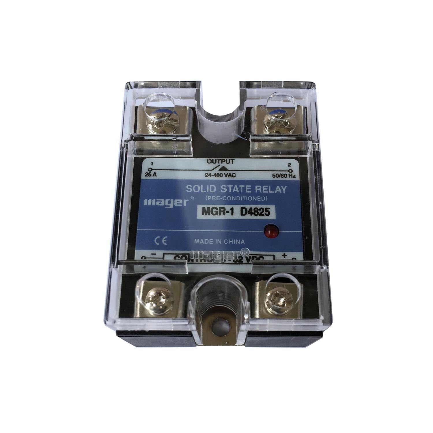 It's for switching AC power source from 24V to 480V. The control signal is 3-32V DC. Maximum AC current 25A. Please note it needs a heatsink to work with it.
