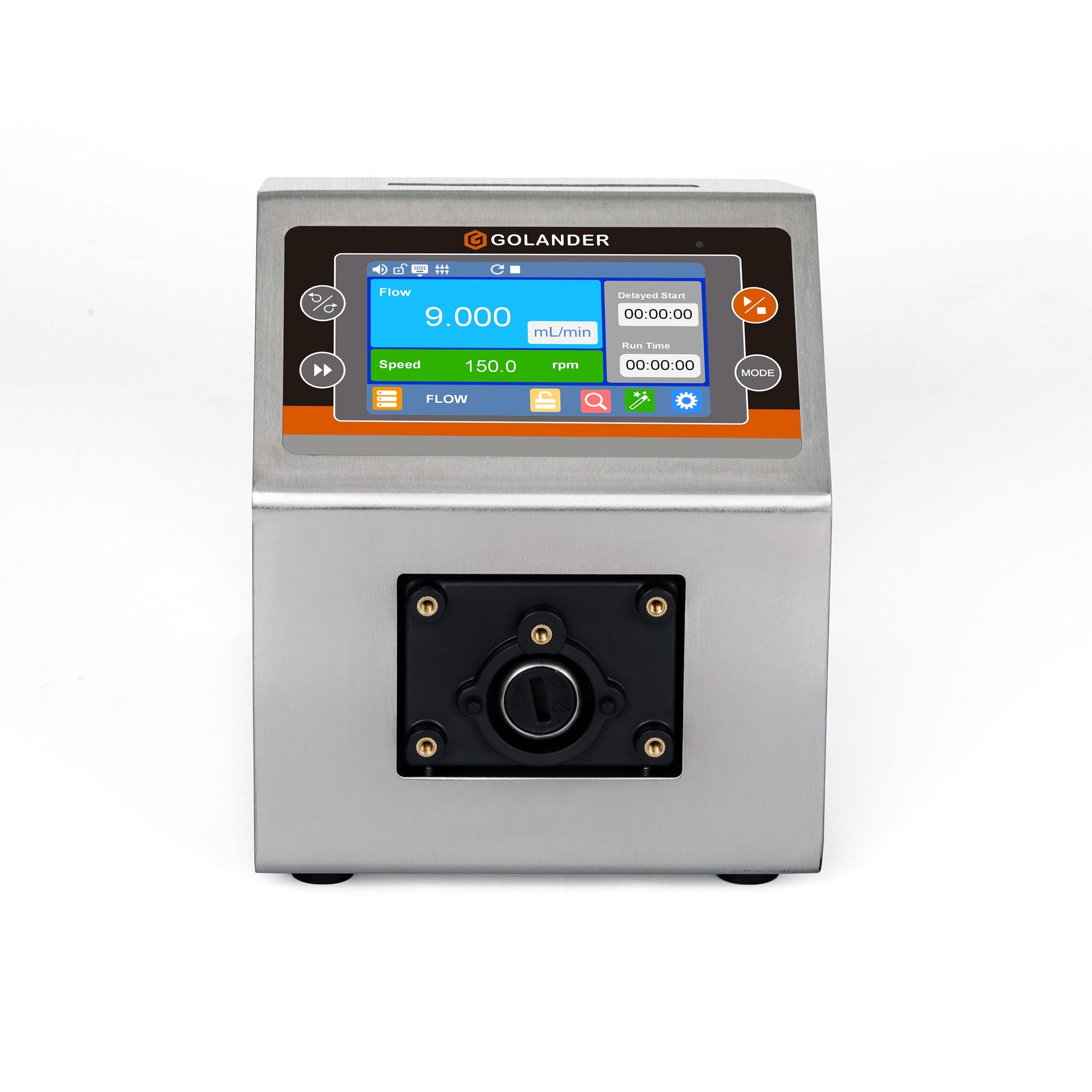 - Flow rate display and control; Cumulative dispense volume display.