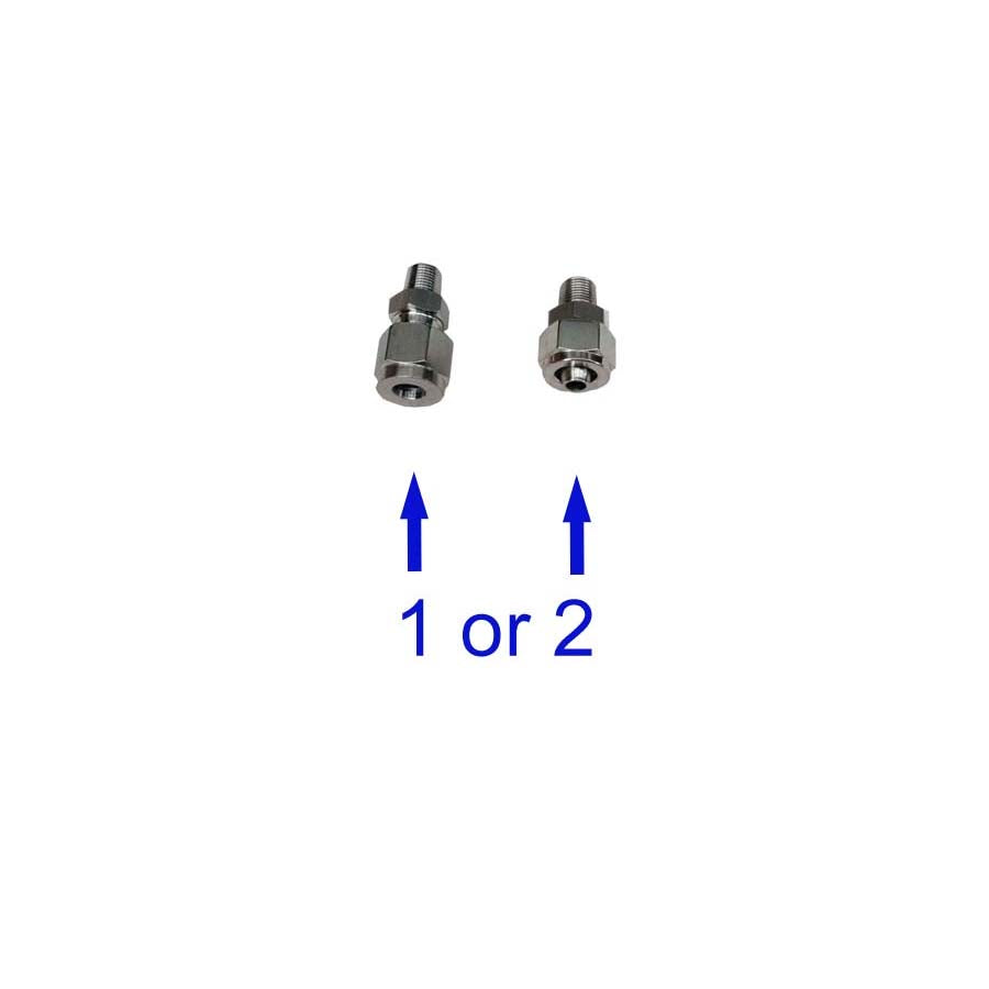 Fitting 1 shown in the picture is a compression fitting adapter for PTFE hard tubing, ID6xOD8mm, ID8*OD10mm, or ID10xOD12mm;