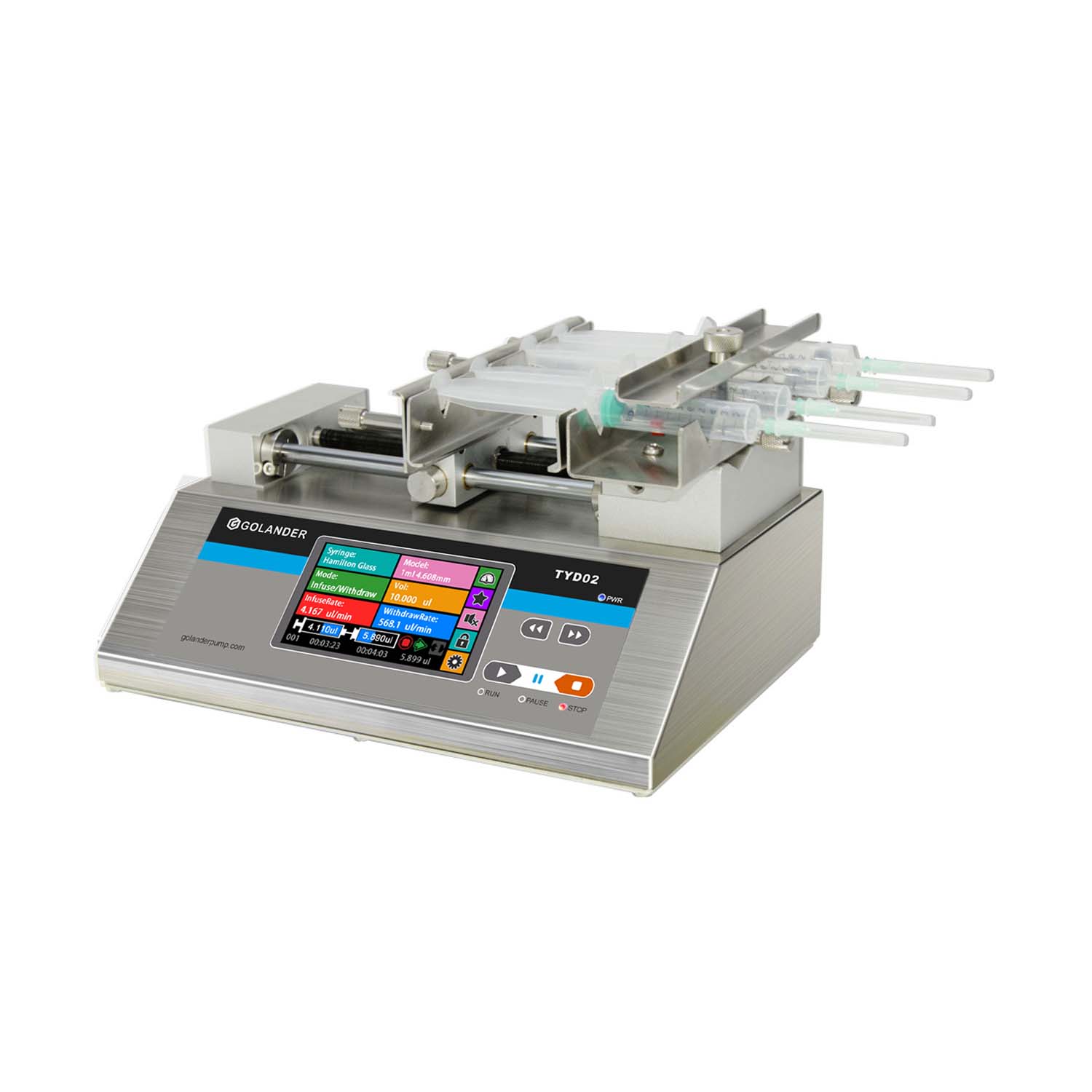 The LAB-04 laboratory syringe pump features an integrated benchtop design, complete with a 5" HD LCD touchscreen for intuitive operation. This pump is capable of accommodating up to 4 syringes, offering versatility with a broad range of syringe volumes, spanning from 10 μL to 10 mL. Additionally, it provides precise control over flow rates, ranging from 0.184 nL/min to 24.520 mL/min.