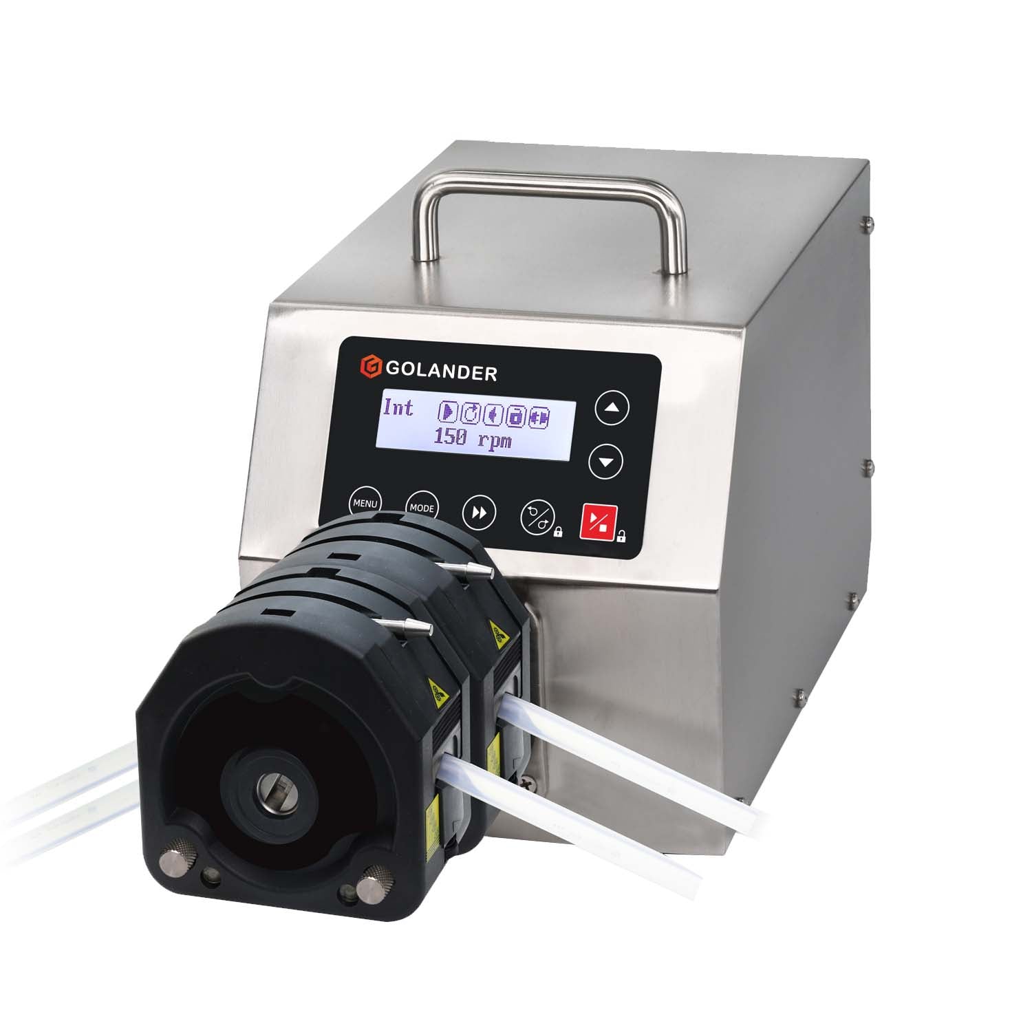 WT300S pump can work with up to 4 pump heads because of the high torque DC brushless motor drive and it's maintenance free. It has basic functions such as reversible direction, start/stop, full speed (for fast cleaning) and adjustable speed. The start/stop, reversible direction, speed adjustment functions can be controlled by external control signal, besides it also has time dispensing function. With RS485 MODBUS communication interface, the pump is easy to communicate with external device, such as PC, HMI or PLC.